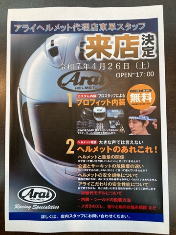 アライ、SHOEIのフィッティングイベントを開催いたします。