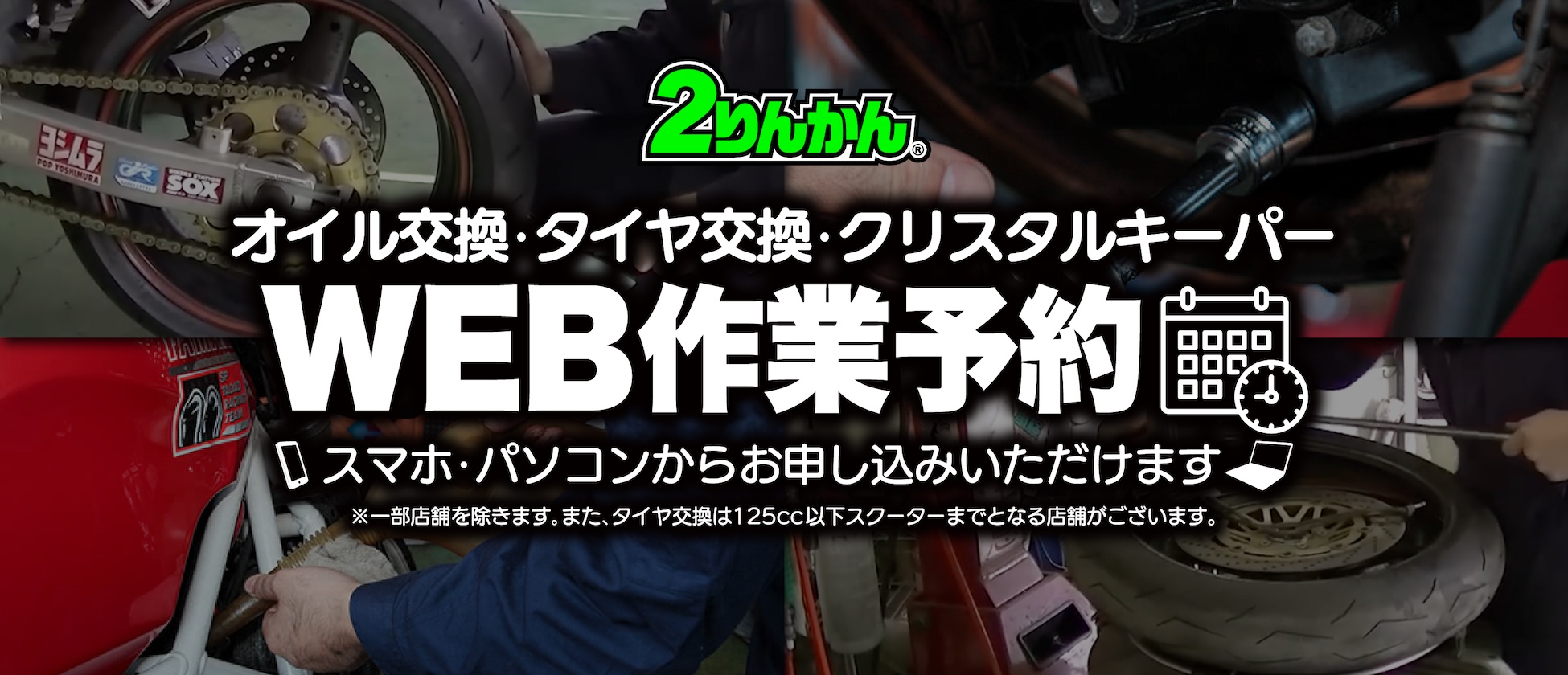 ※こちらは2りんかんの予約となります。併設のバイク館での作業はお受付出来ません。お間違えの無いようご注意ください。