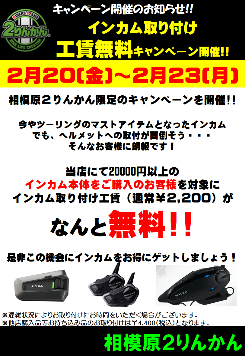 2月20(金)~23日(月)限定!インカム買換えのチャンス!2万円以上のモデルは取付無料!