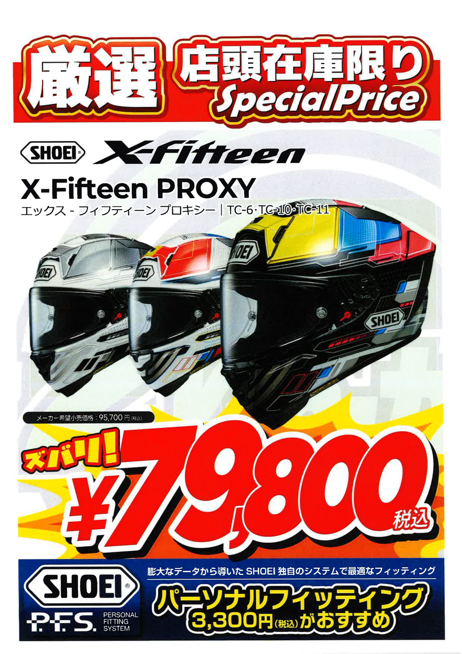 ☆SHOEI X-fifteen PROXY TC-6/TC-10/TC-11 税込み¥79.800☆