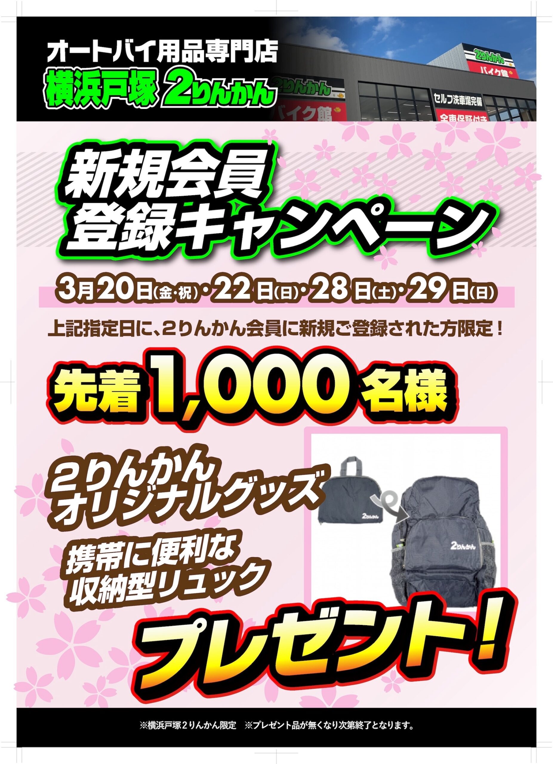 2りんかんオリジナル 収納型リュックをプレゼント!!!