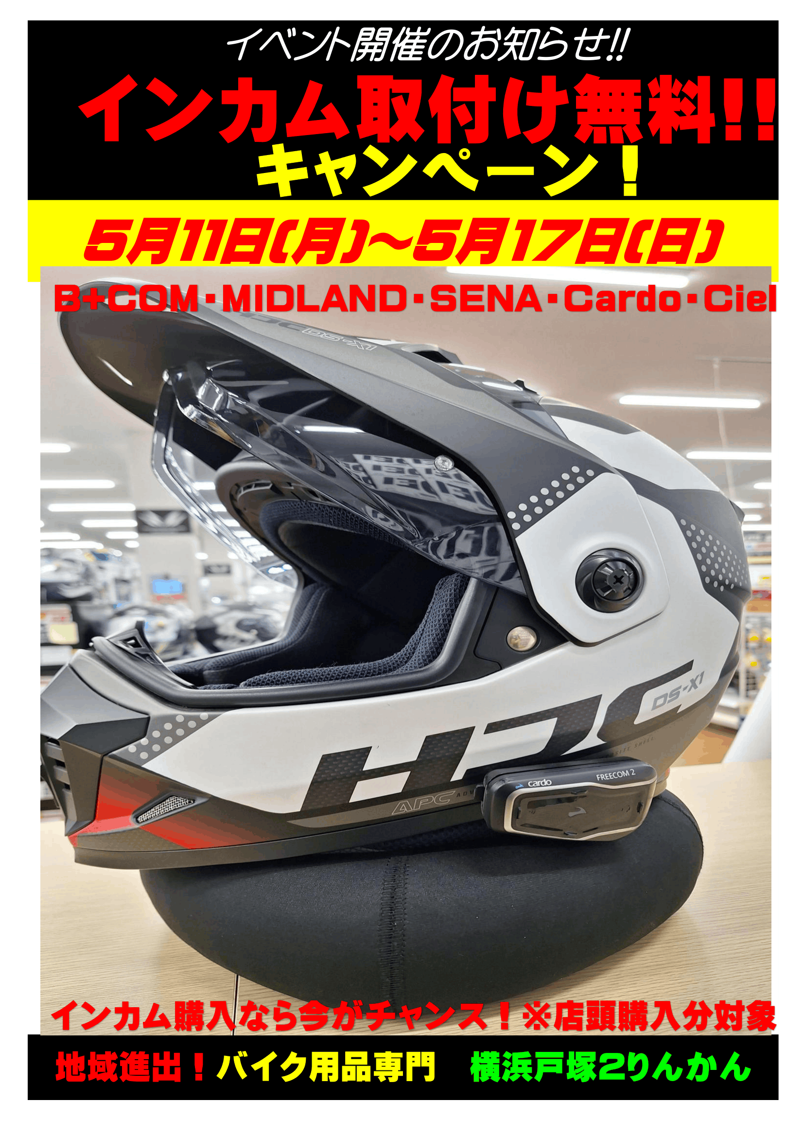 インカム取り付け無料キャンペーン開催