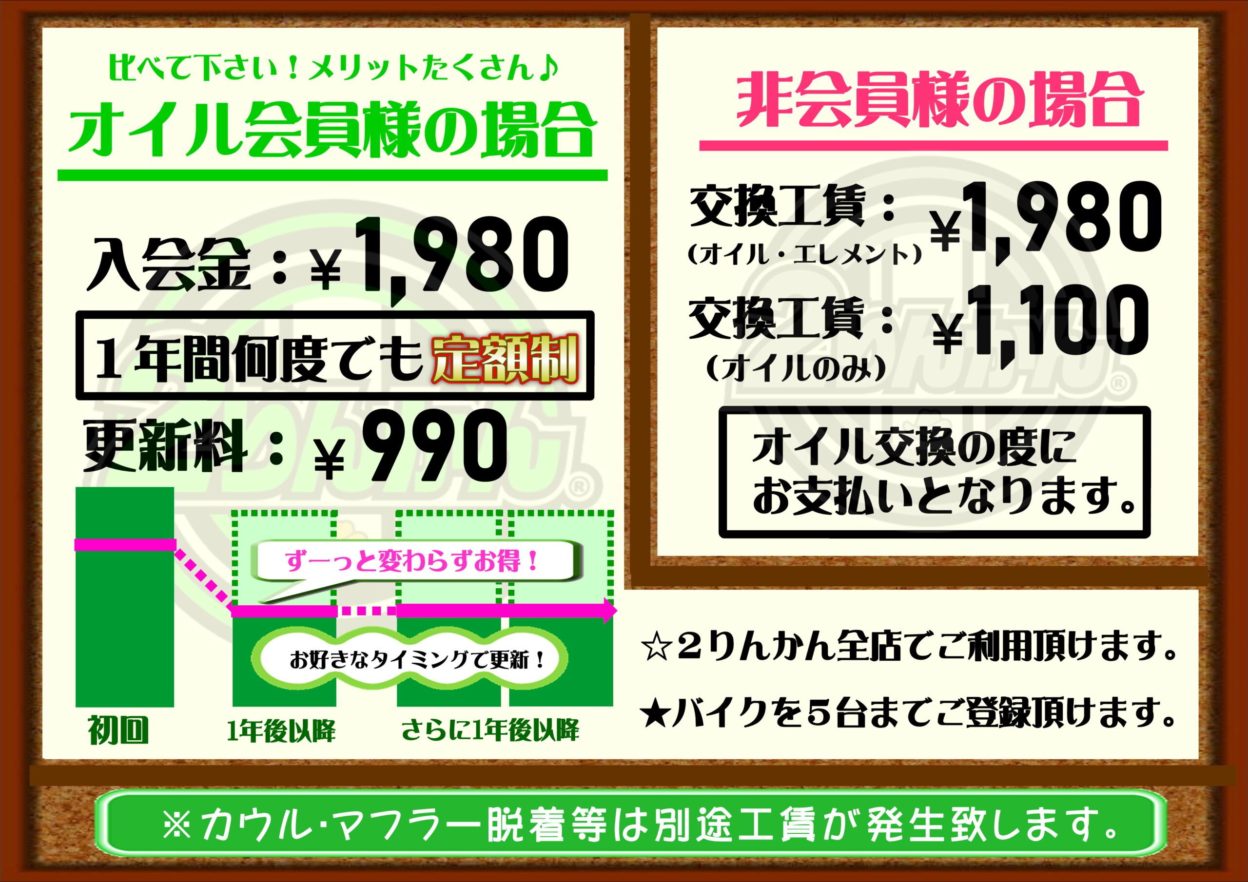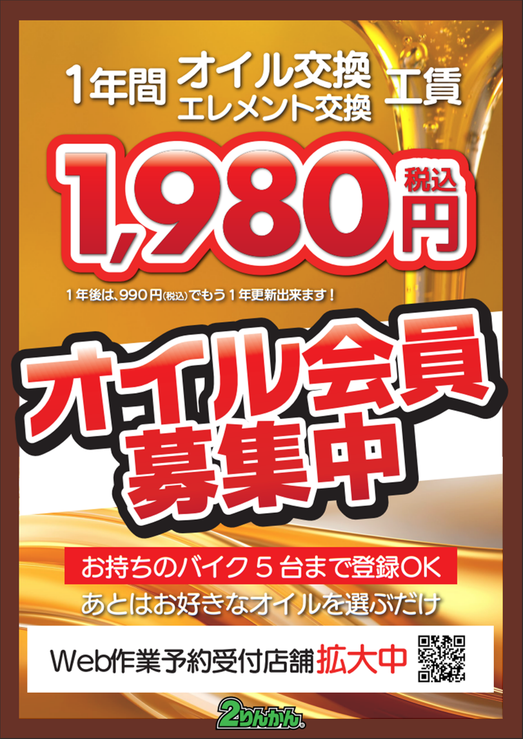 オイル会員のご入会金1,980円(税込)で、