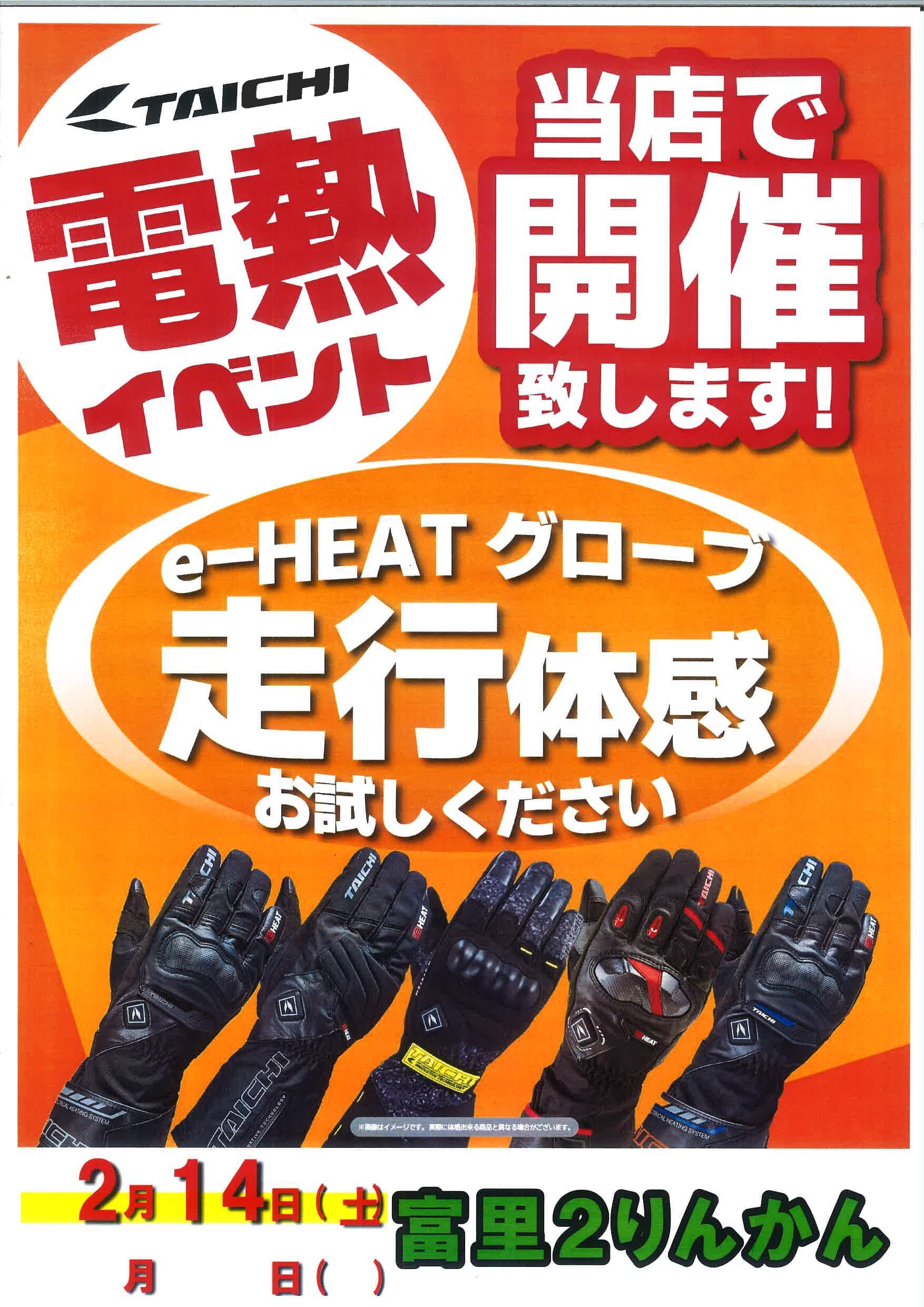 富里2りんかんでは、2月14日(土)にRSタイチ電熱体感イベントを開催いたします。
