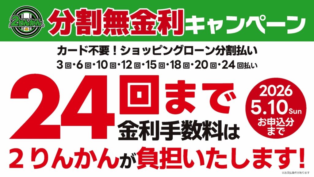2りんかんではショッピングローン分割無金利キャンペーンを開催中!!!