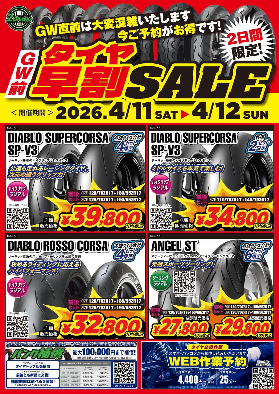 4/11~4/12 GW前タイヤ早割セール開催!