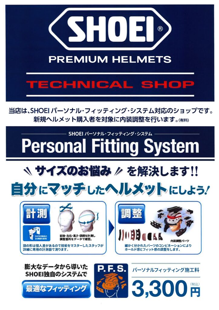 当店は、SHOEIパーソナルフィッティング・システム対応のショップです。