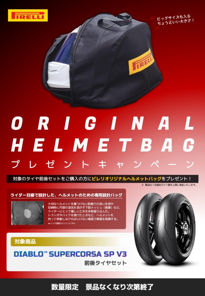 PIRELLI オリジナル ヘルメットバッグをプレゼント!