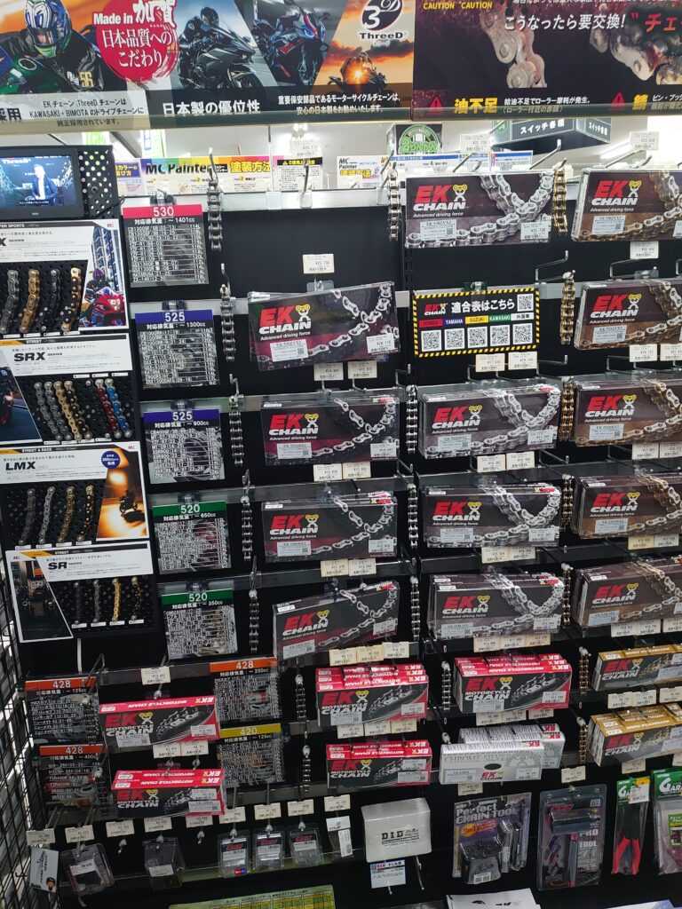 チェーンサイズは420~530まで幅広く取り揃えました。