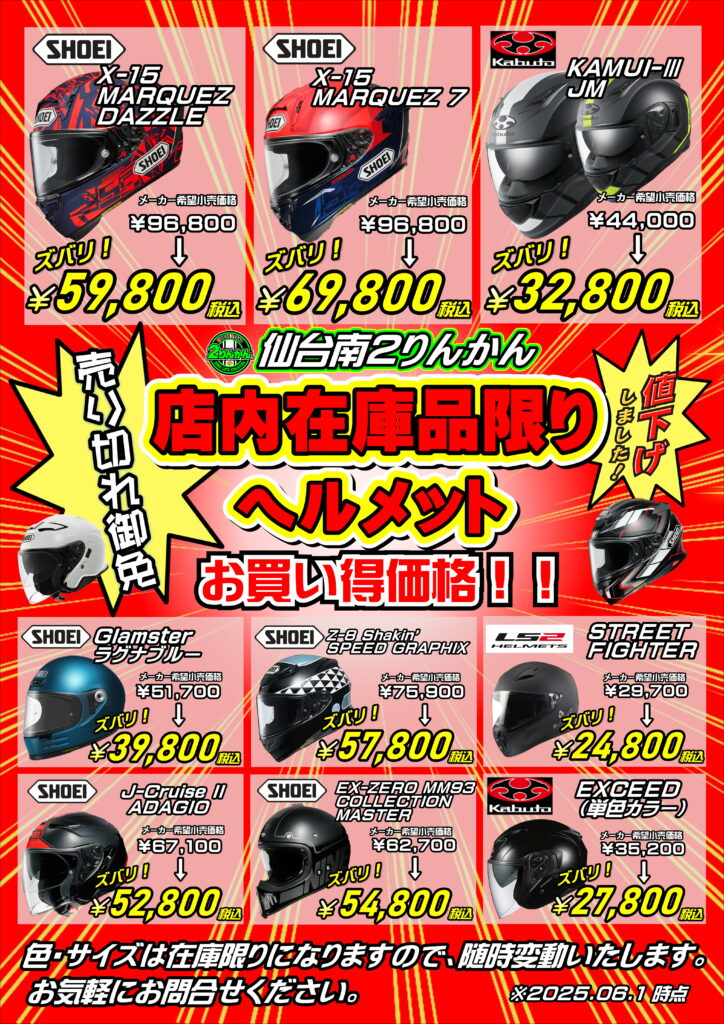 仙台南2りんかんは SHOEI KABUTOのPROSHOP 認定店になっています!