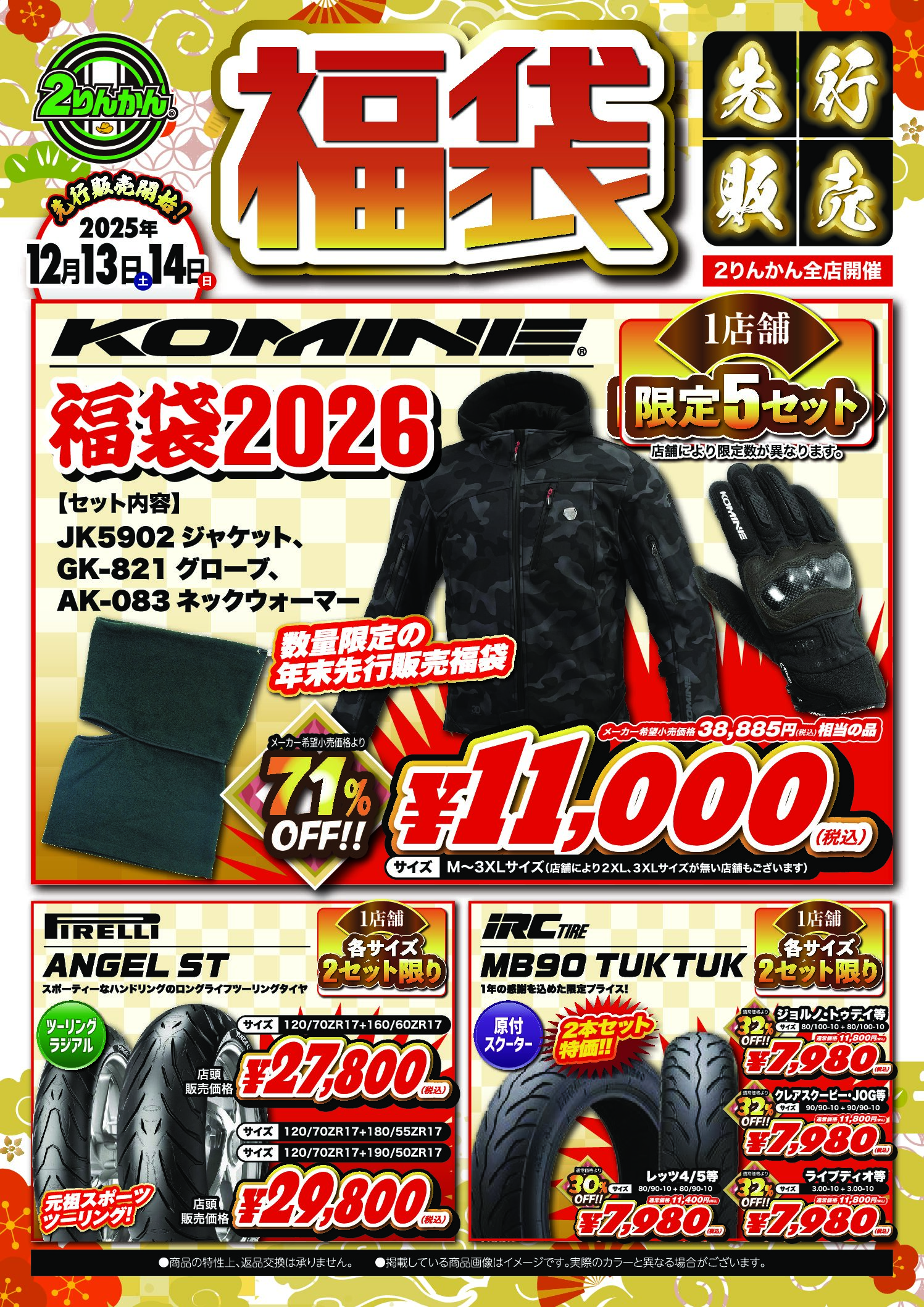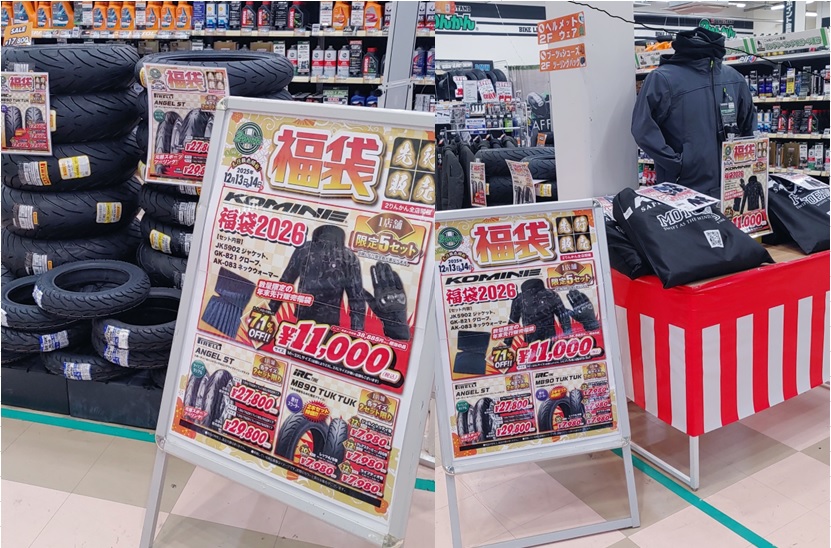店頭にて大変お得なバイク用品福袋をご用意しておりますので、この機会にぜひお買い求めください。