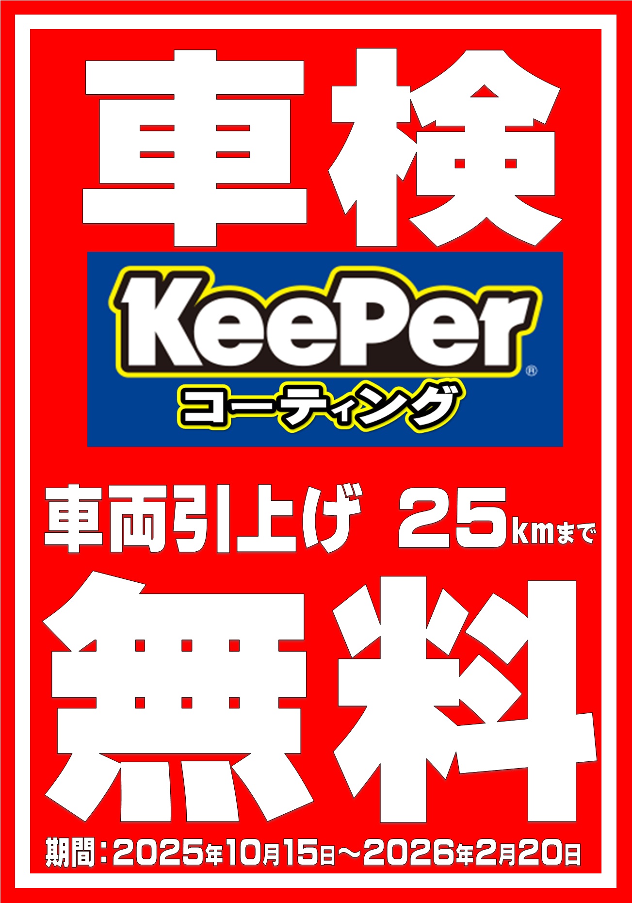 仙台泉2りんかん にて 『車検』または『Keeperコーティング』をご依頼のお客様限定で