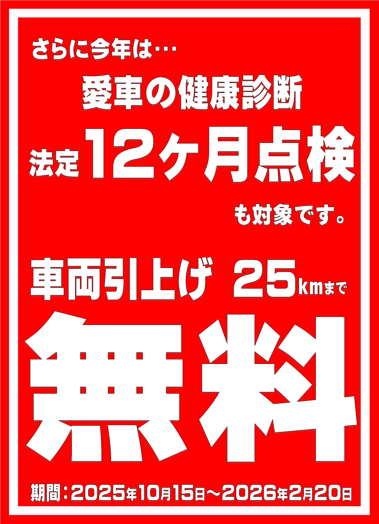 さらに!今年は『法定12か月点検』をご依頼のお客様も対象とさせていただきます!