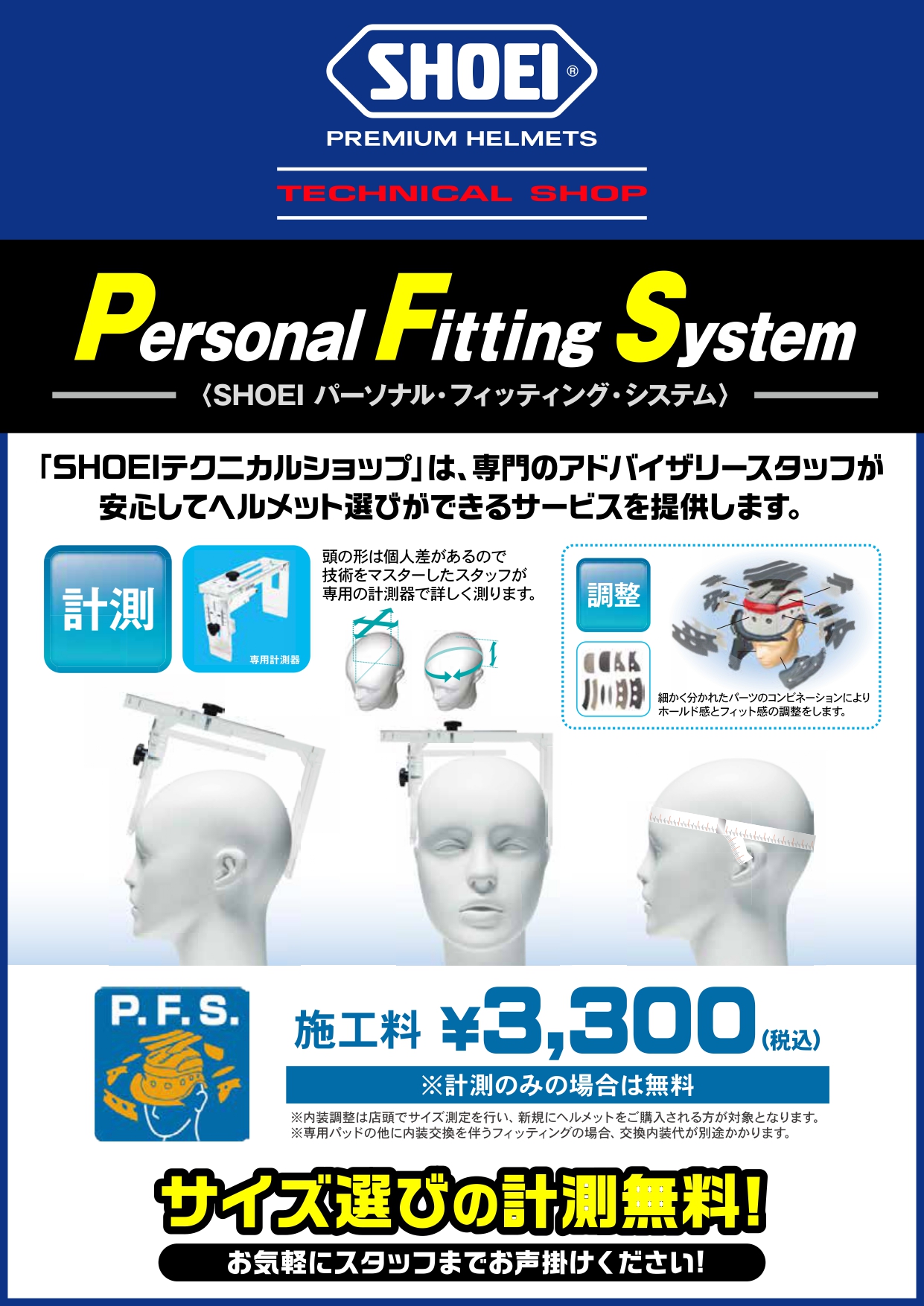 『SHOEI パーソナルフィッティング」の施工資格を持った専任スタッフが常駐しています。