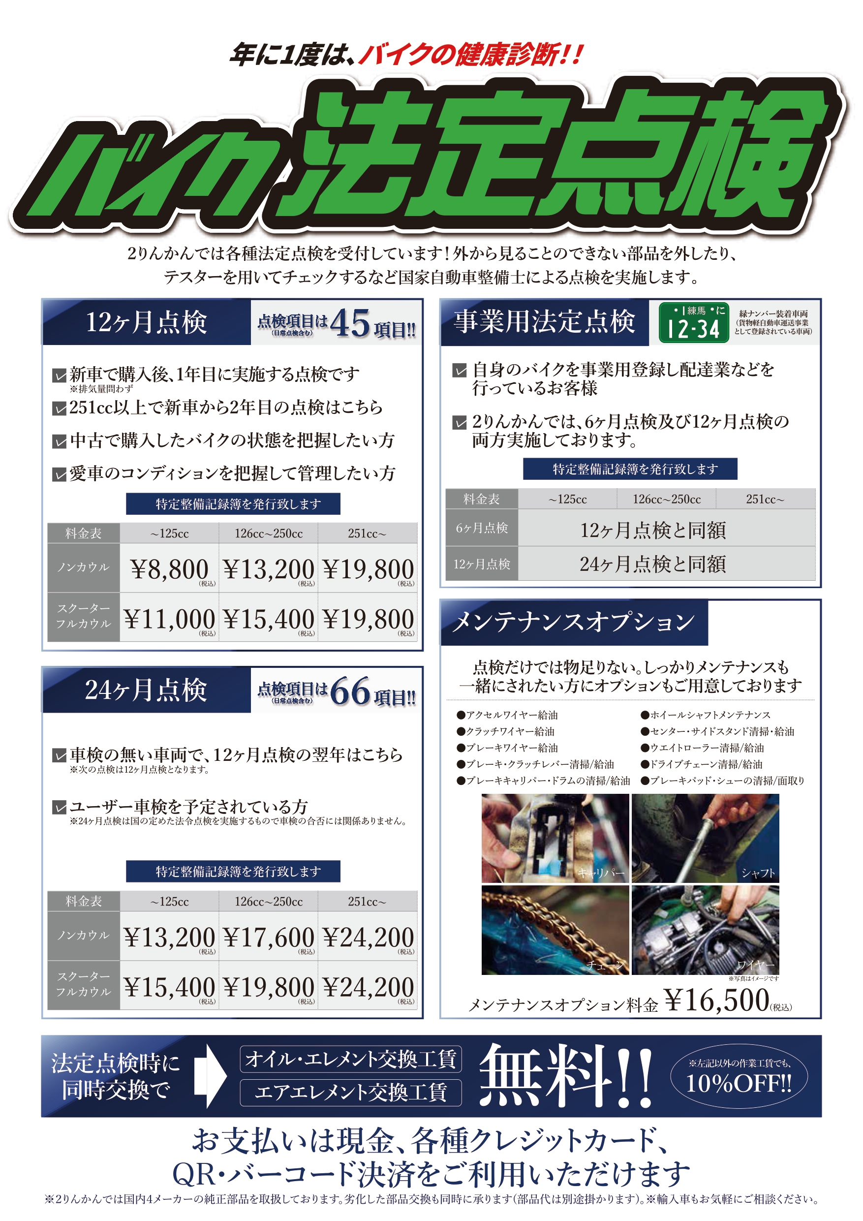日常点検以上の本格的な点検は「法定12か月点検」として受付しております!