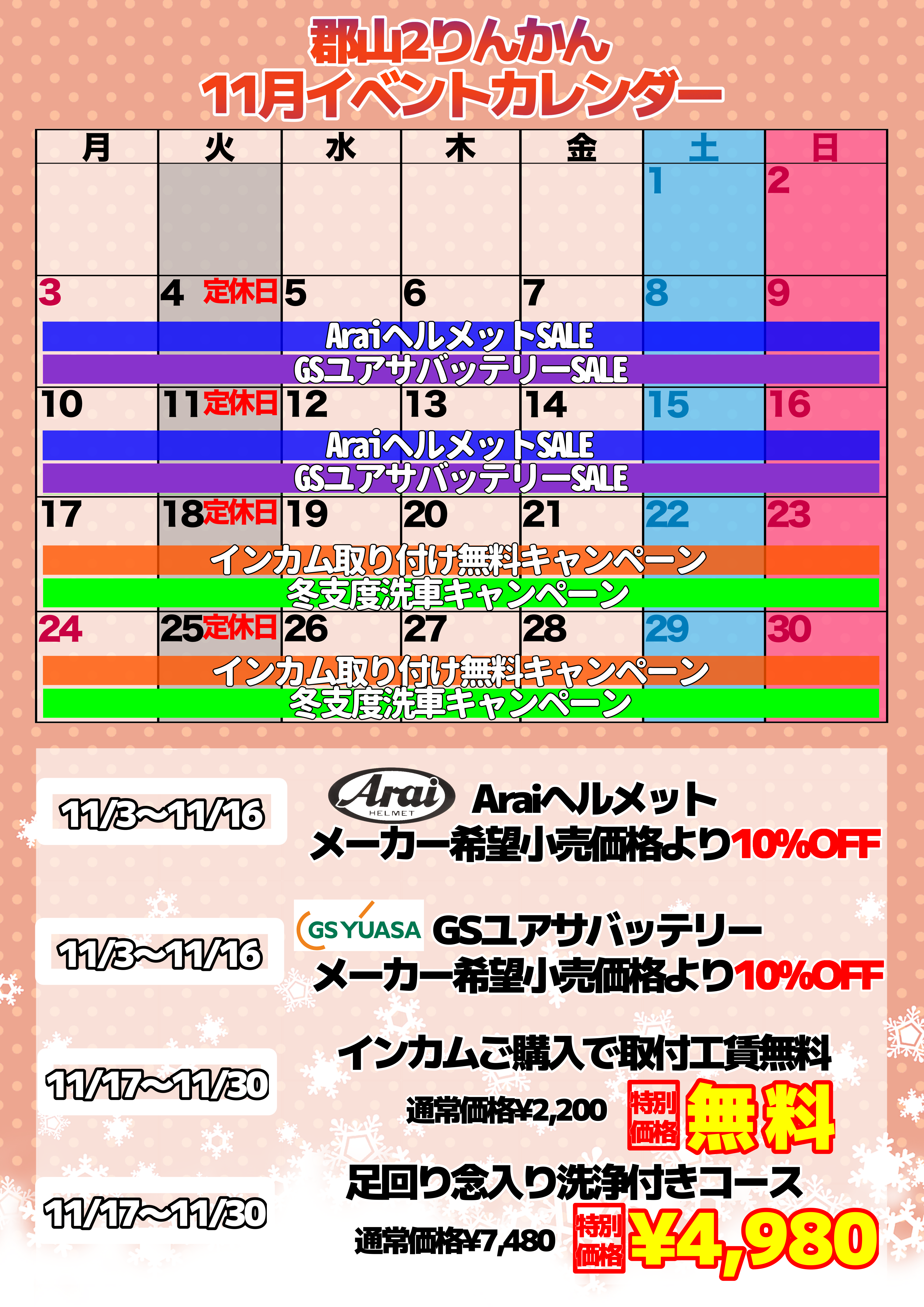 郡山2りんかんでは11/1から2/28までの期間中