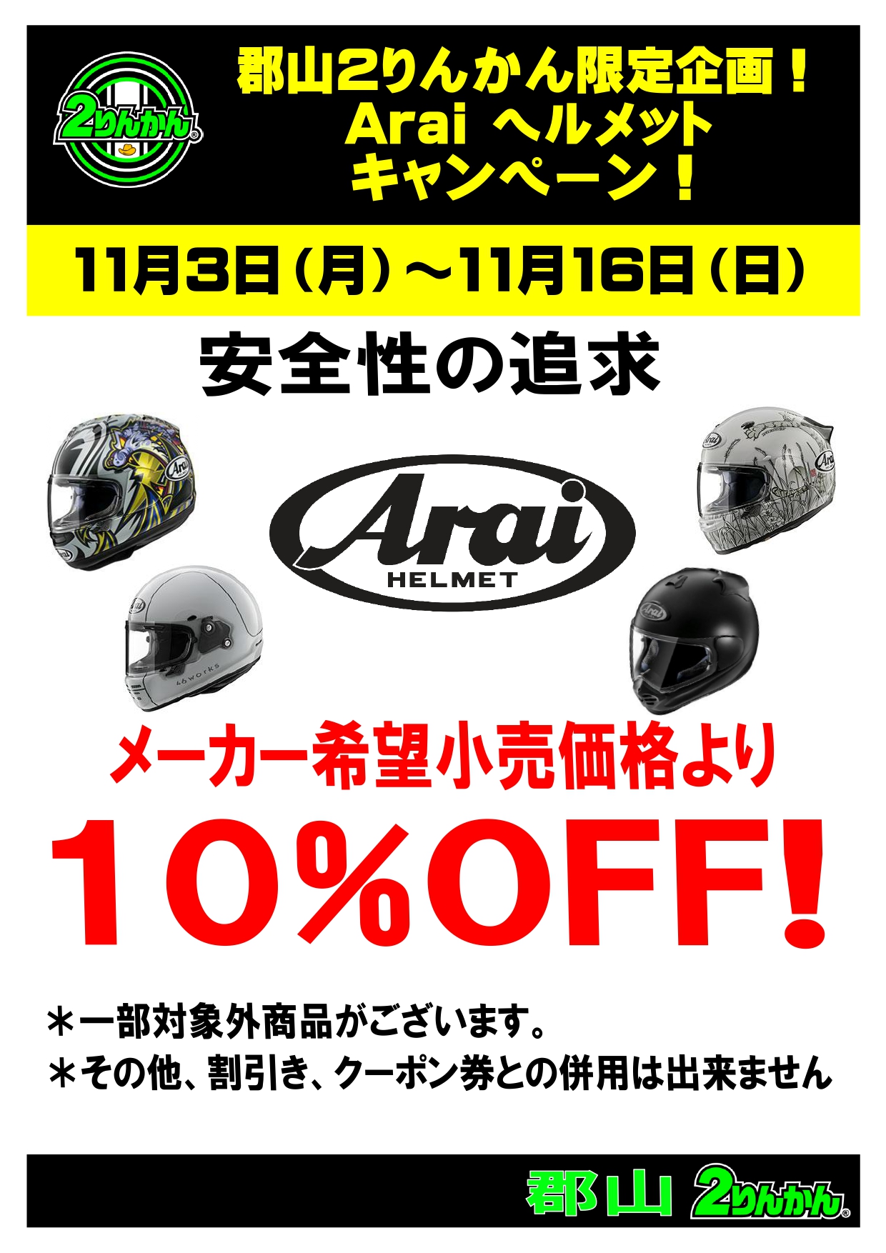 期間中はAraiヘルメットがメーカー希望小売価格より