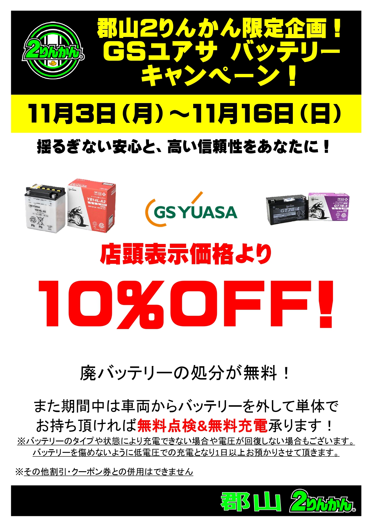 期間中はGSユアサバッテリーが店頭表示価格より