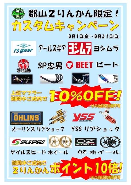 タイヤやヘルメット、ウエアが期間中お買い得になります!