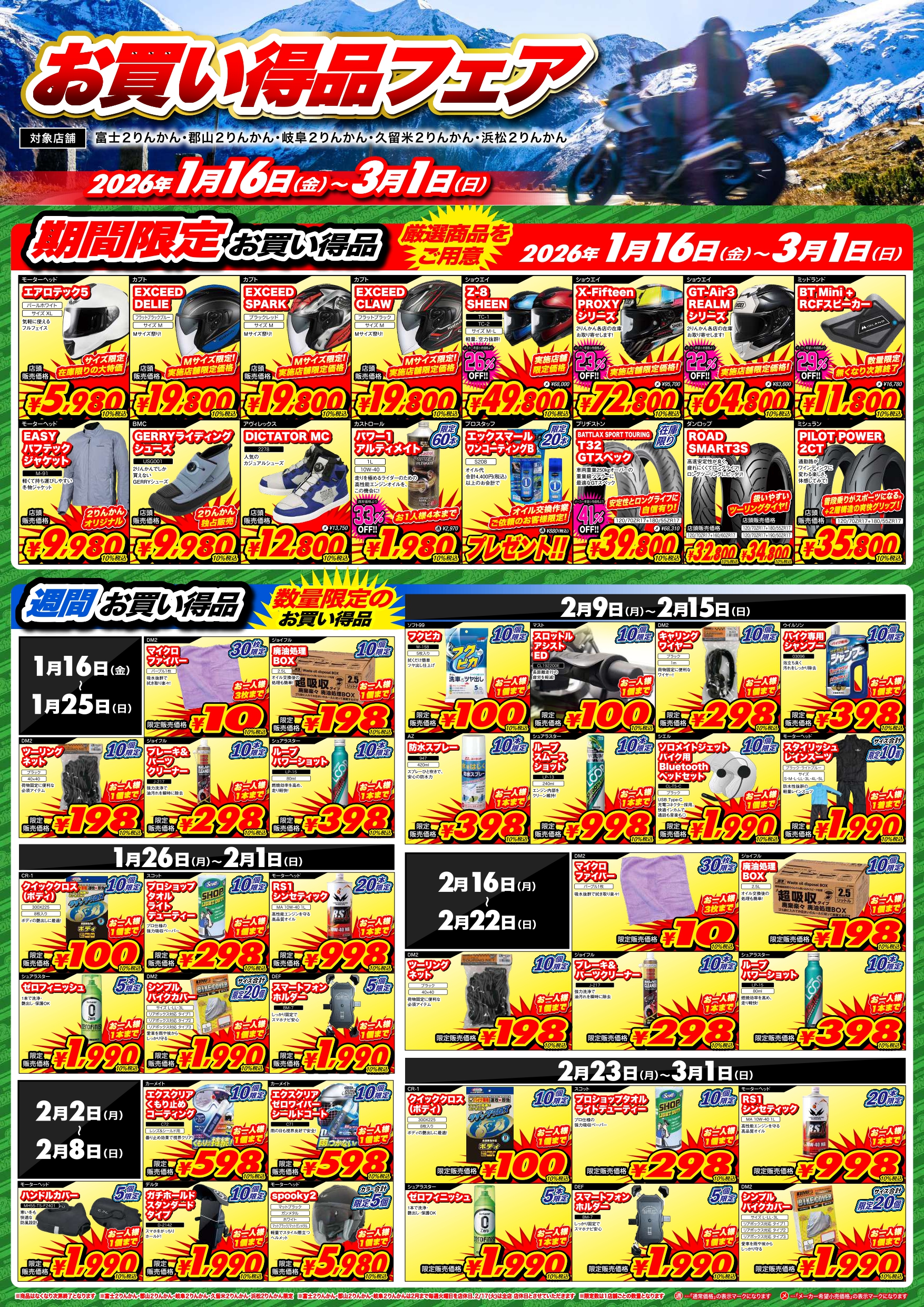 【1月16日(金)~3月1日(日)】お買い得品フェア開催!