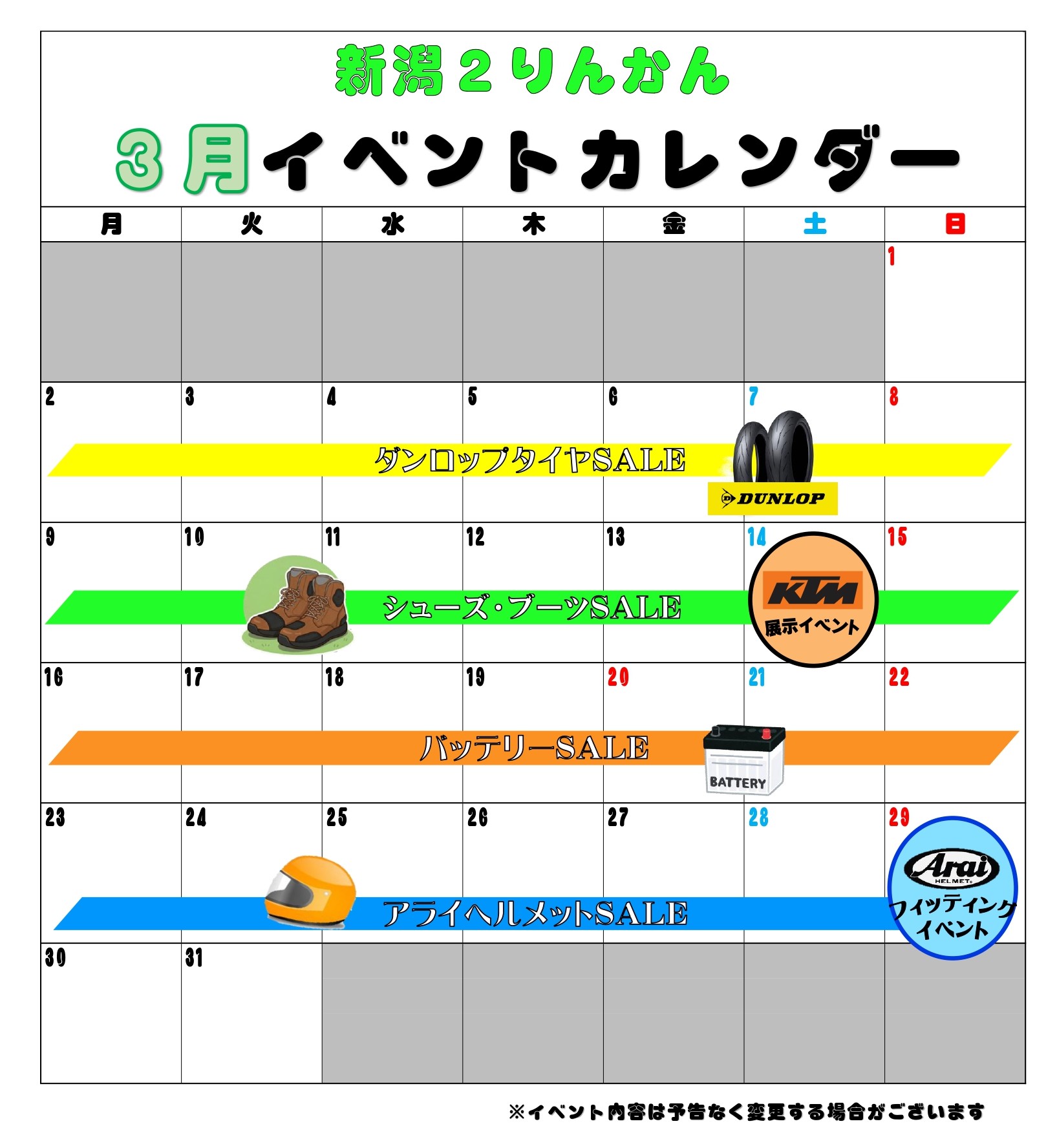 3月イベントカレンダー【新潟限定】