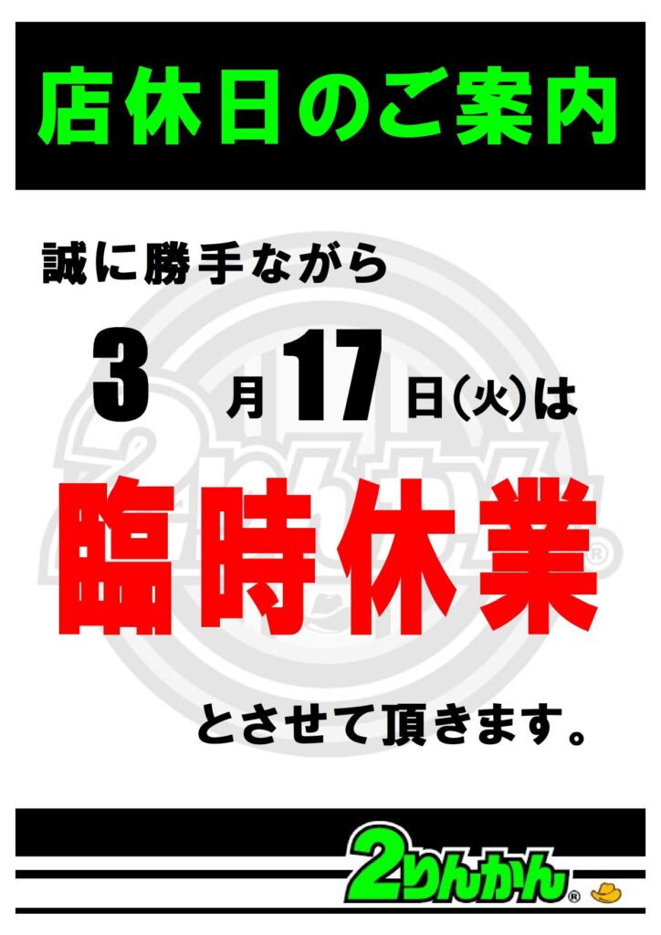 3月17日(火)は臨時休業いたします