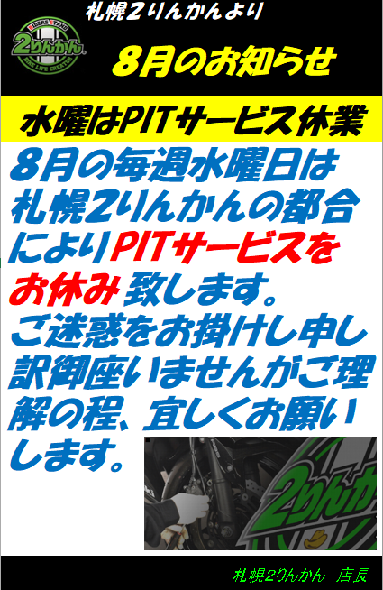 札幌2りんかんヘルメットコーナーからのお知らせです。