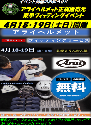来る4月18・19日アライヘルメットフィッティングイベント開催