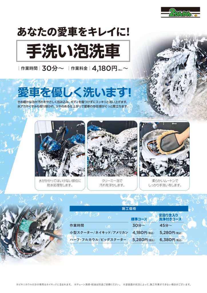 当店では、バイクをピカピカに仕上げる 泡洗車 を実施しています✨