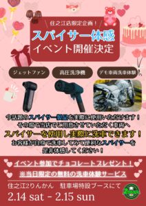 住之江店の駐車場にてジェットファンや高圧洗浄機を使用し