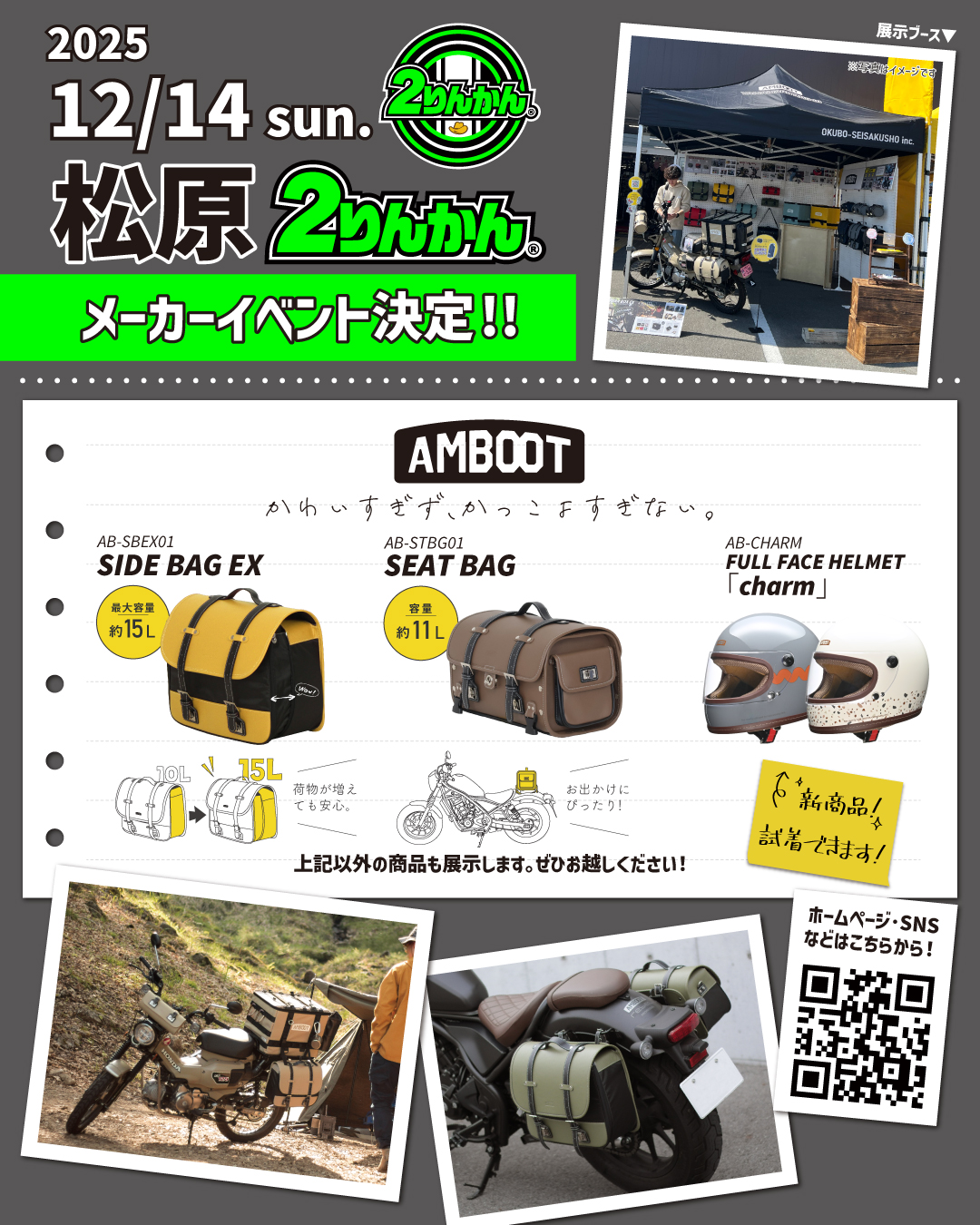 □新商品のヘルメットやNewカラーのバッグも試着できまる!