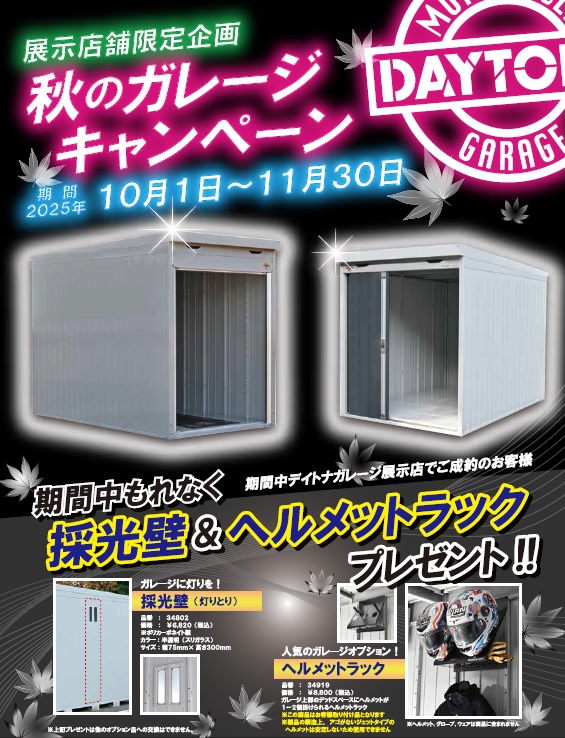 松原2りんかんでは、デイトナ秋のガレージキャンペーンを開催しております。