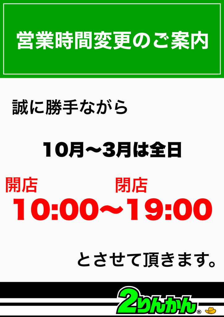 松原2りんかんでは10月~3月までの期間は営業時間が変更となります。