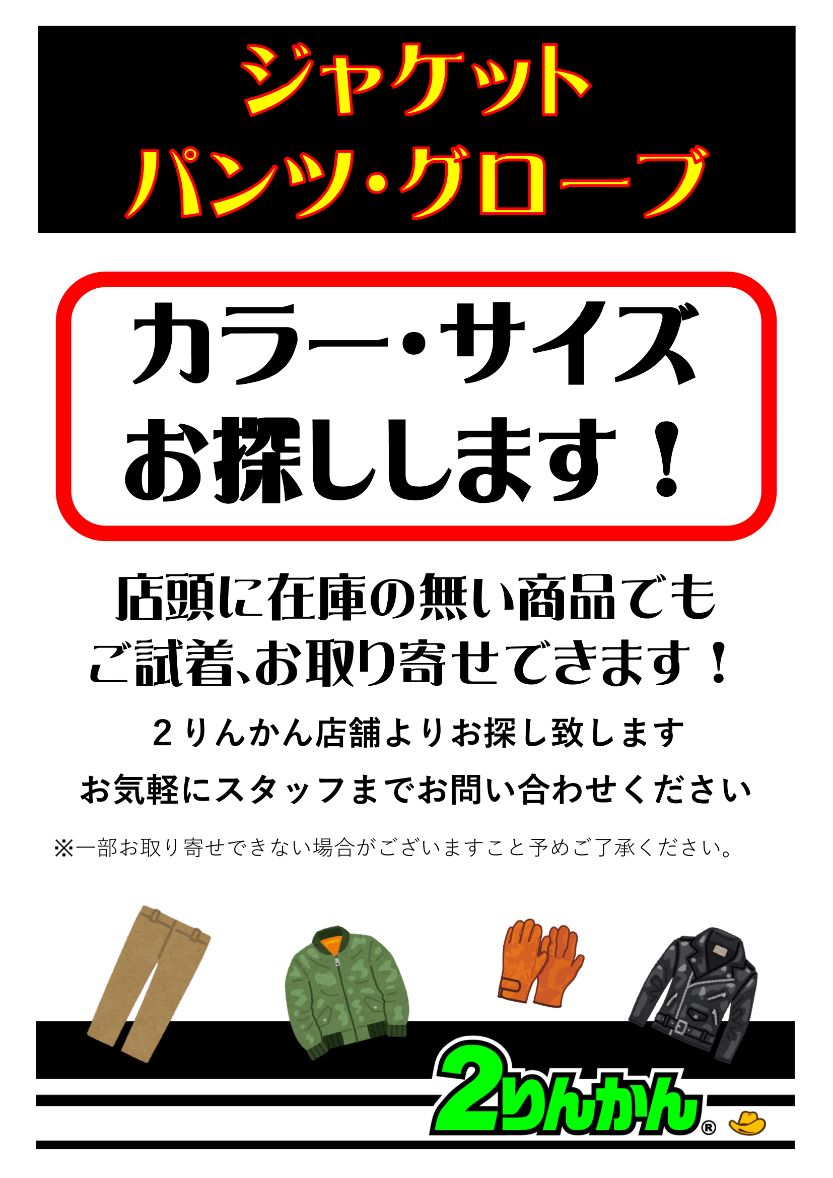 松原2りんかんでは、店頭に在庫のないカラーやサイズの