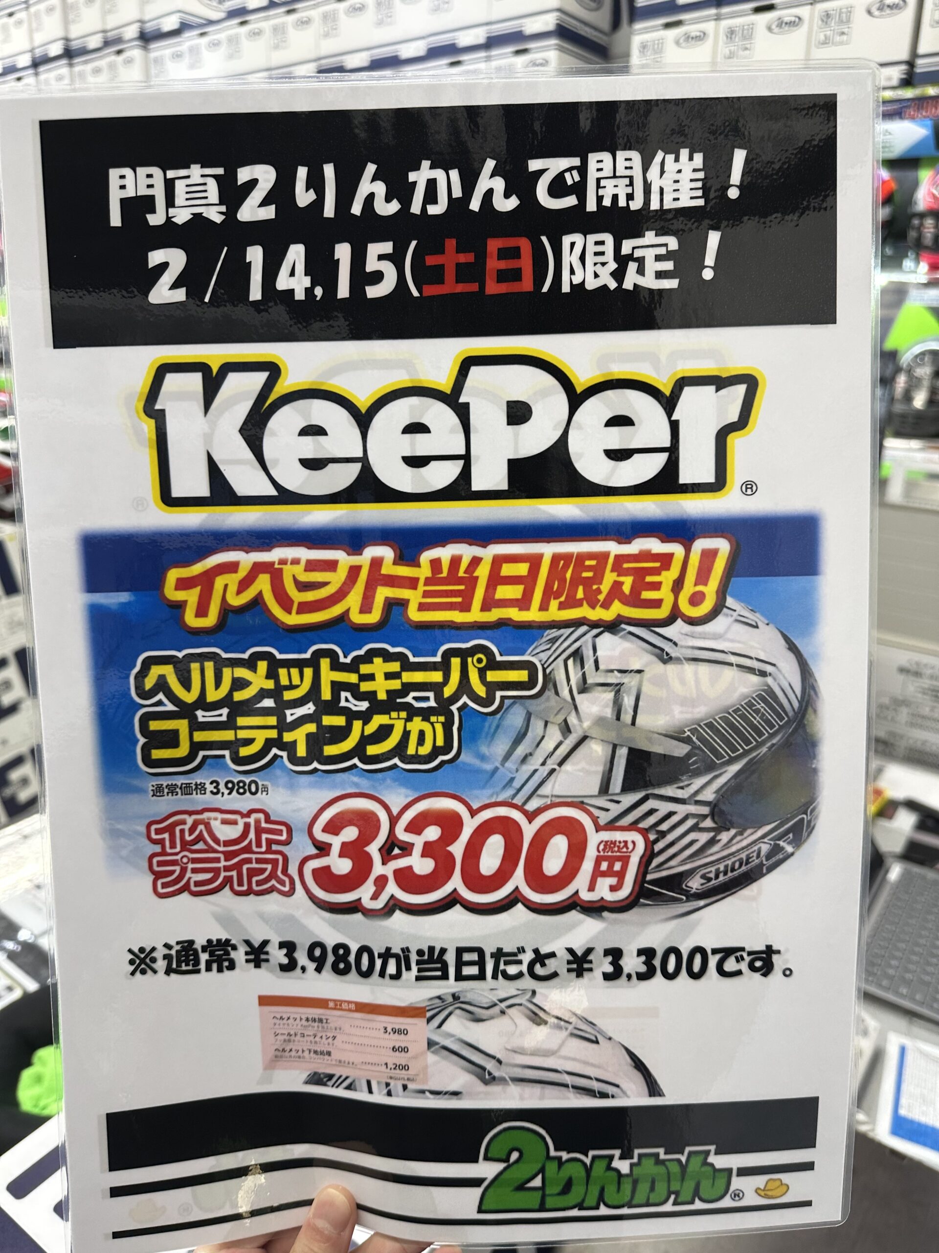 地域最大級!大阪バイク用品のことなら門真2りんかんにお任せください!今話題の【KeePerヘルメットコーティング】徹底的に塗装を守り、ヘルメットを常に美しく!!ヘルメット購入の際は是非ご検討下さい!オプションメニューでシールド撥水コートもオススメです!