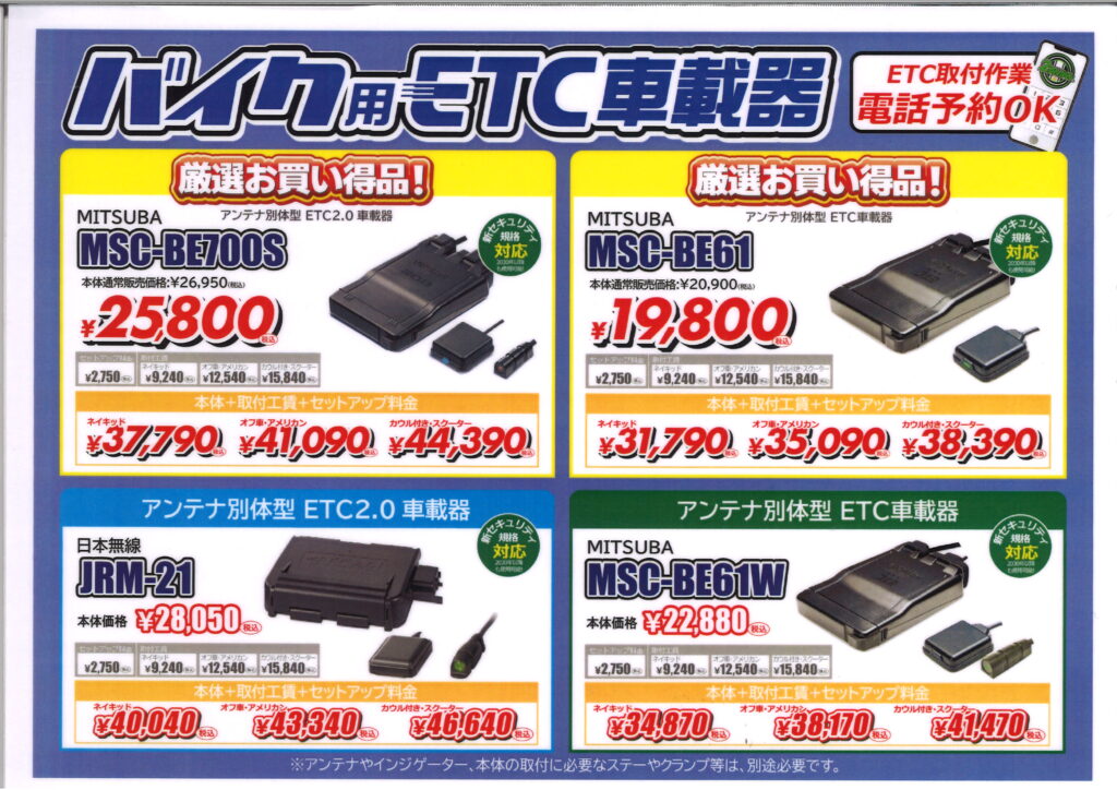 奈良2りんかんではオートバイ用ETC取付をしております。