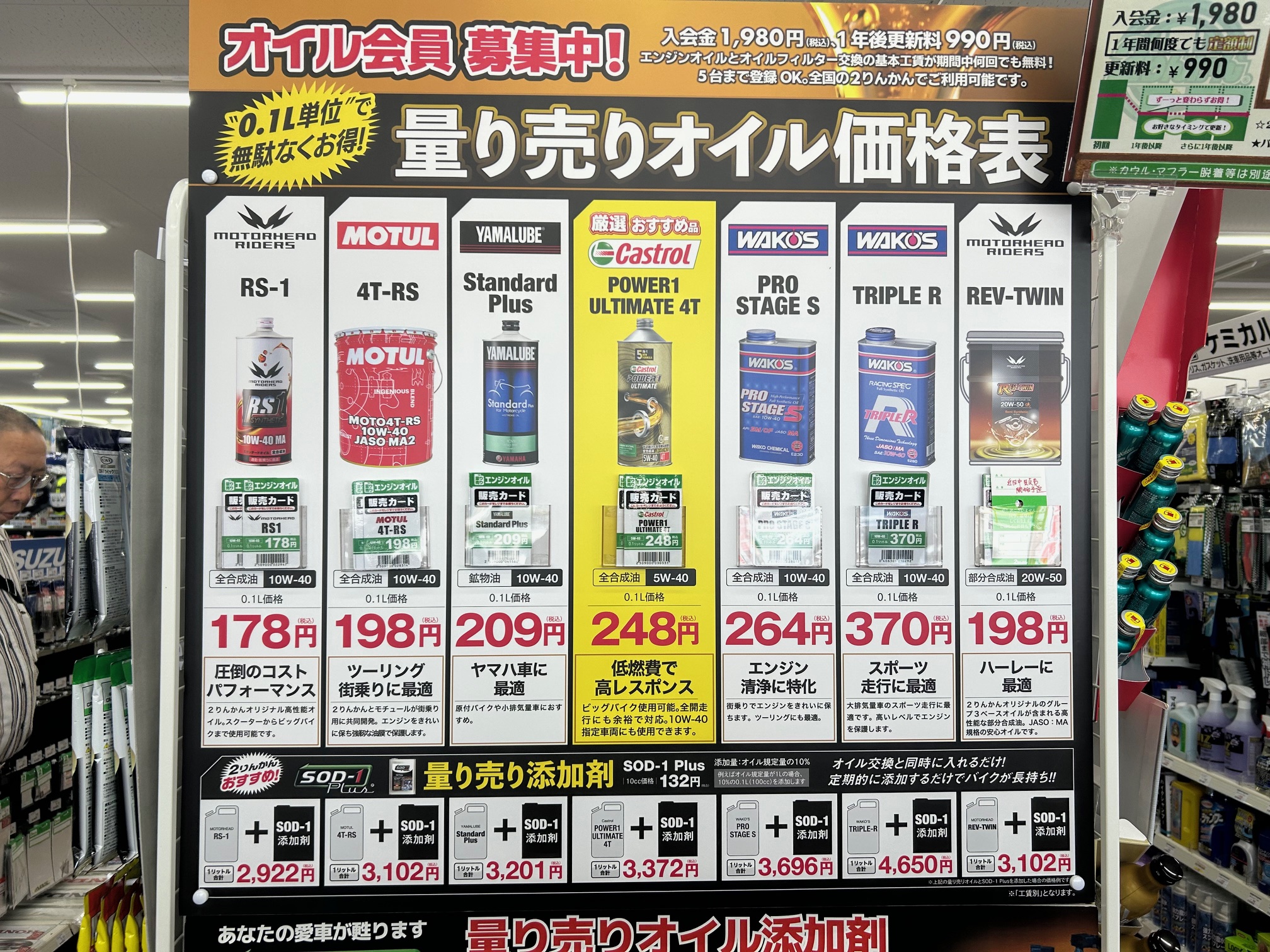 ①Moterhead Riders RS-1 (10w-40) ¥178(0.1L価格) 圧倒的コストパフォーマンス