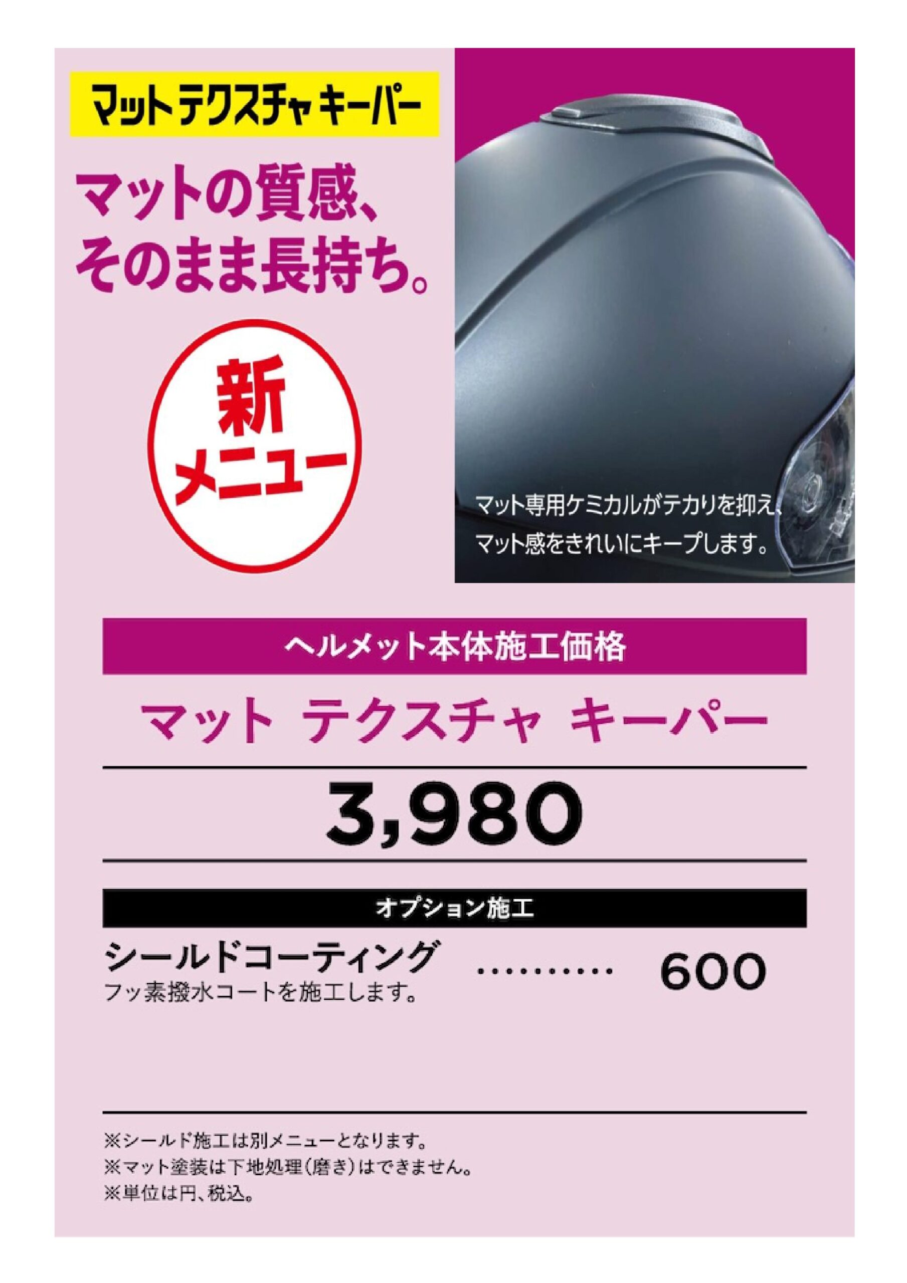 ヘルメットコーティングに新メニューが追加されました、その名も。