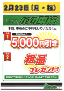 同時に車検のご予約を頂くと、車検費用が最大5000円キャンペーンも同時開催して