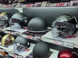 広島舟入2りんかんでは、フルフェイス・ジェットタイプ・半キャップまで様々なタイプを揃えています