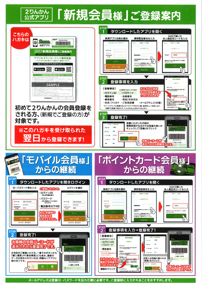 2りんかんでお買い物の際100円ごとに1ポイント貯まるのはもちろんメールアドレスをご登録頂くと2りんかんのお得な情報を発信致します アプリ会員になりより便利に使いやすくなりました今までポイントカードをご利用の方、モバイル会員をご利用の方でも!