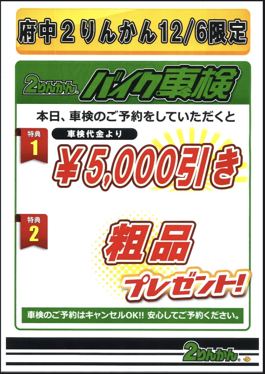 12/6(土) 府中2りんかんにてお客様感謝デーを開催致します。