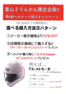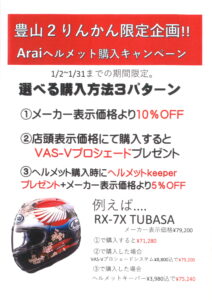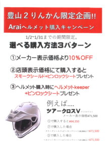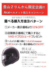 Araiヘルメット 1月月間企画キャンペーン中です。