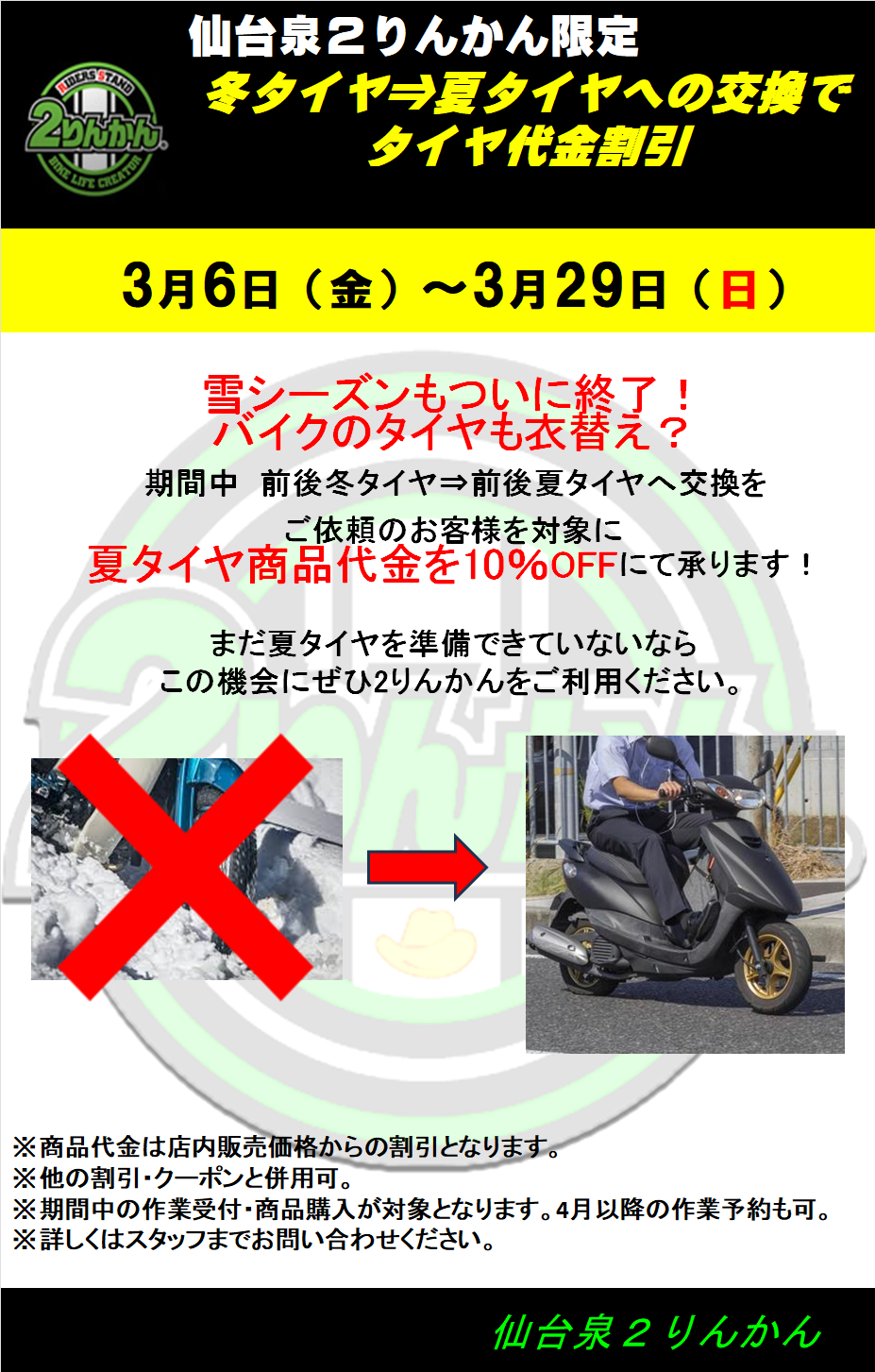 冬タイヤ⇒夏タイヤへの交換で タイヤ代金割引!!