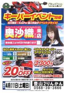 4月11日(土曜日)は KeePerコーティングイベント を実施します!